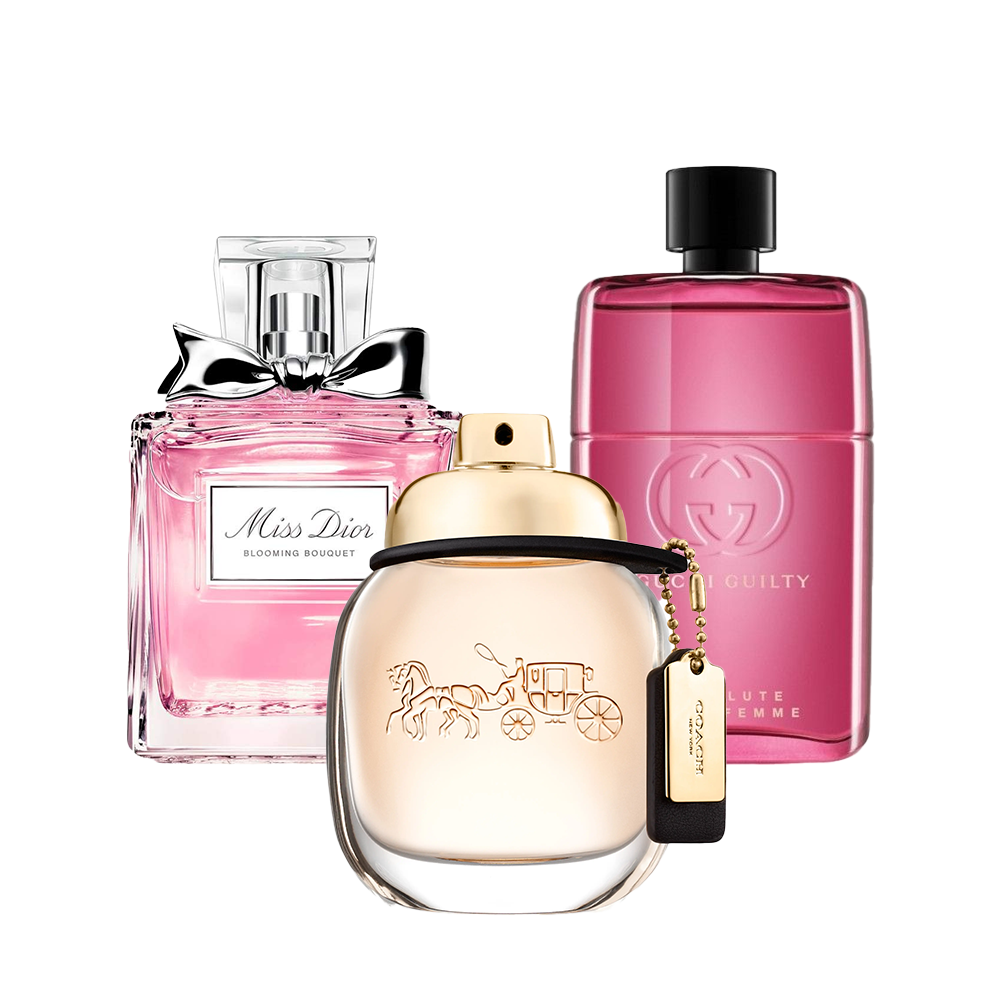 مجموعة عطرية تحتوي على:عطر قوتشي أبسلوت بور فيم للنساء - 90 مل - أو دي بارفيومعطر ديور مس ديور بلومينج بوكيت للنساء - 100 مل - أو دي تواليتعطر كوتش نيويورك للنساء - 90 مل - أو دي بارفيوم