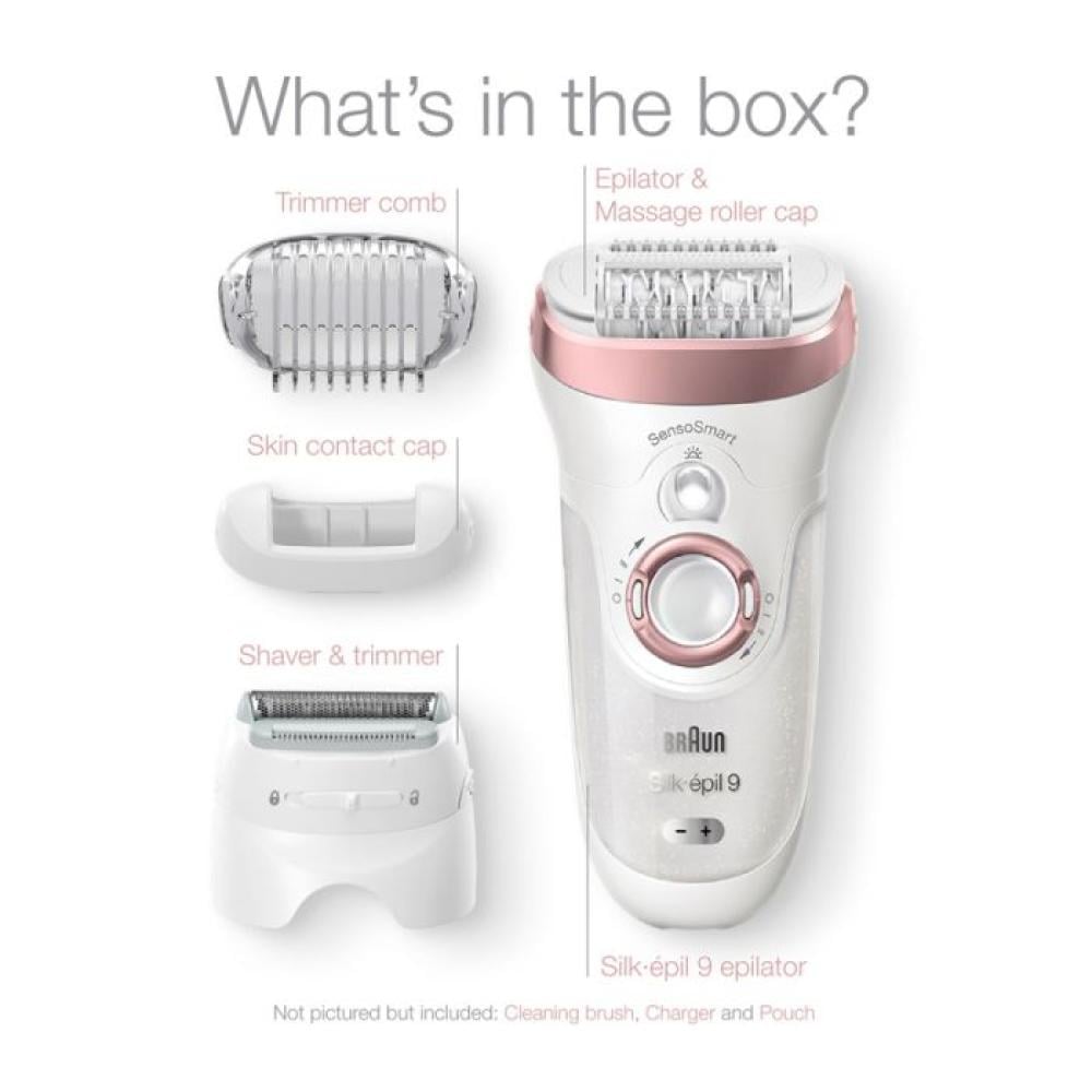 ماكينة إزالة الشعر براون سلك ابيل 9 النسائية مع 3 قطع من الملحقات SES 9-720 - أبيض