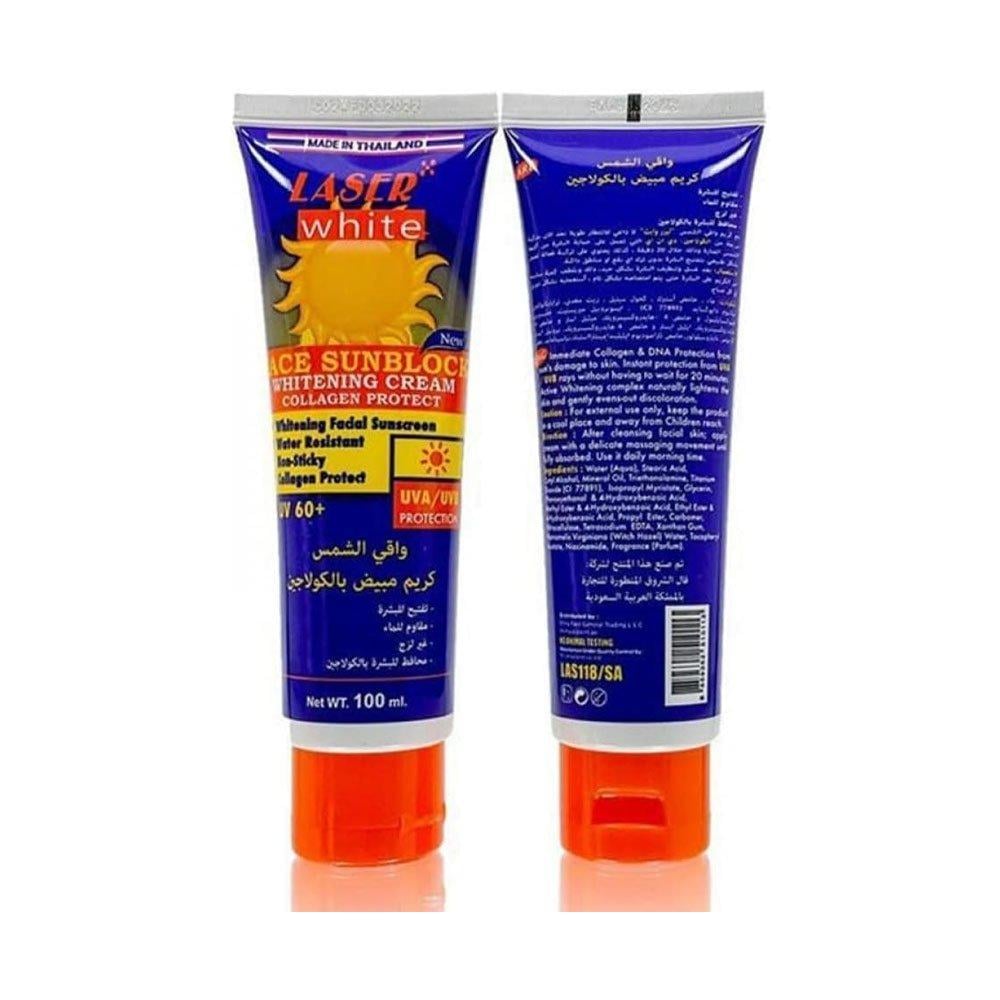 ليزر وايت كريم واقي الشمس ومبيض بالكولاجين بعامل حماية 60+ - 100ج