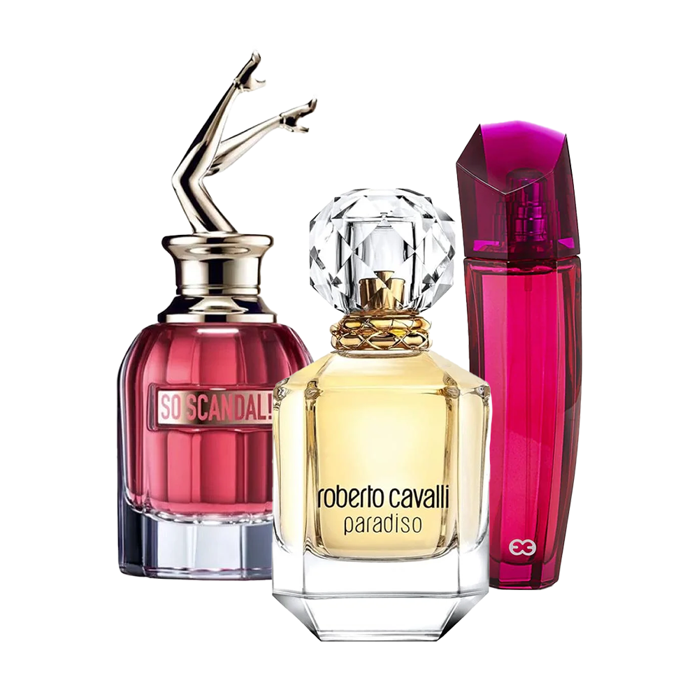 تتكون هذه المجموعة الحصرية من:عطر جان بول كوتير سو سكاندال - 80مل - بارفيوم عطر إسكادا ماجنيتزم للنساء - 75 مل - أو دي بارفيومعطر روبرتو كفالي باراديسو للنساء - 75 مل - أو دي بارفيوم